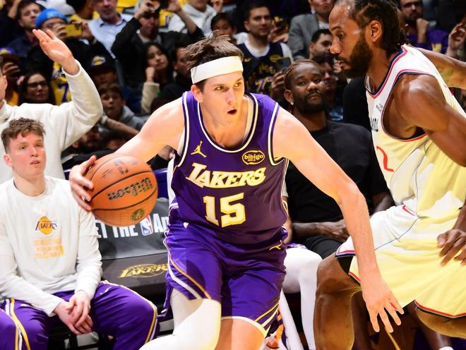 东契奇罚球命中,随后单打哈登出现三不沾。哈登抛投得分,距离终场不足3分钟,快船将分差缩小至个位数,胜负悬念再起,比赛也进入白热化阶段。东契奇补篮被犯规,祖巴茨个人第5次犯规,东契奇2罚1中。哈登外线不进,里夫斯快速上篮得分,科林斯外线打铁,詹姆斯连续抢下篮板,东契奇助攻海斯空接暴扣。泰伦卢请求暂停,距离终场还剩1分52秒,快船落后14分并换上板凳席末端的球员,选择提前弃子认负。湖人抢断,詹姆斯上篮得分,里夫斯2罚全中,两队随后在场上练兵,比赛时间逐渐走完。最终,湖人以135比118力擒快船,就此斩获了5连胜。此役之后,湖人排名反超掘金升至西部第二位。同时,湖人还锁定了NBA杯的淘汰赛资格。