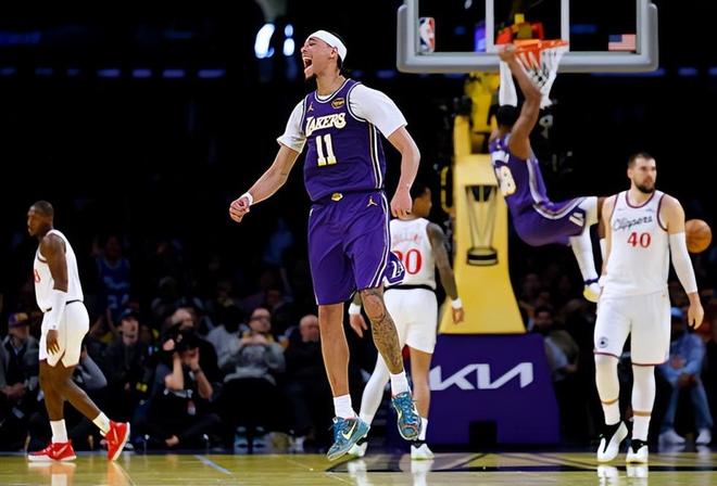 在此前的一场NBA杯比赛中,主场作战的洛杉矶湖人以135比118战胜了洛杉矶快船。本场比赛后,拿下了5连胜的湖人的战绩提升到了13胜4负,排名也是超过了丹佛掘金并且回升到了西部第2位;而遭遇了两连败的快船的战绩则是下滑到了5胜13负,排名也是被萨克拉门托国王反超而下滑到了西部第13位。