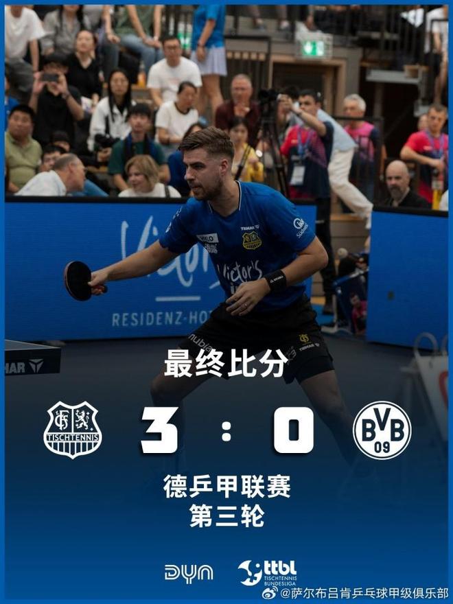 萨尔布吕肯大比分3-0完胜多特蒙德,樊振东建功
